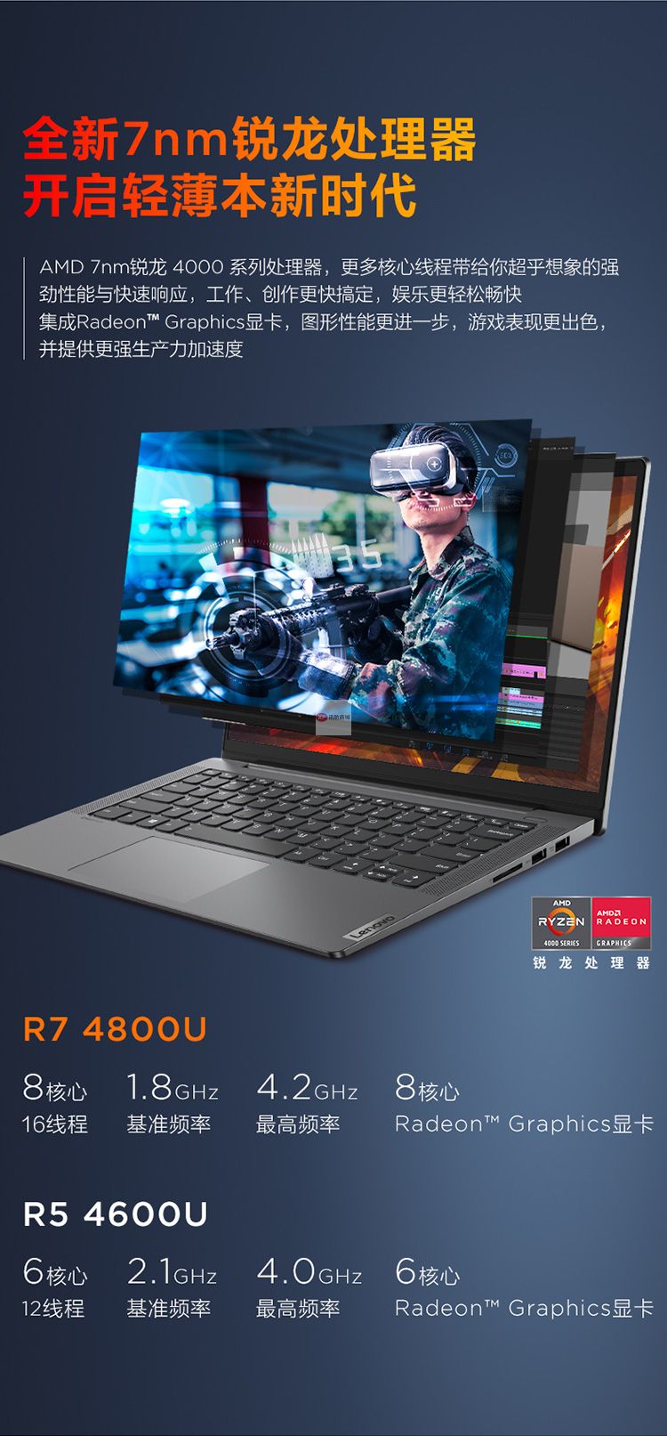 商品名稱:聯(lián)想(Lenovo)小新Air14銳龍版性能輕薄本 14英寸全面屏辦公筆記本電腦(6核R5-4600U 16G 512G 高色域)深空灰