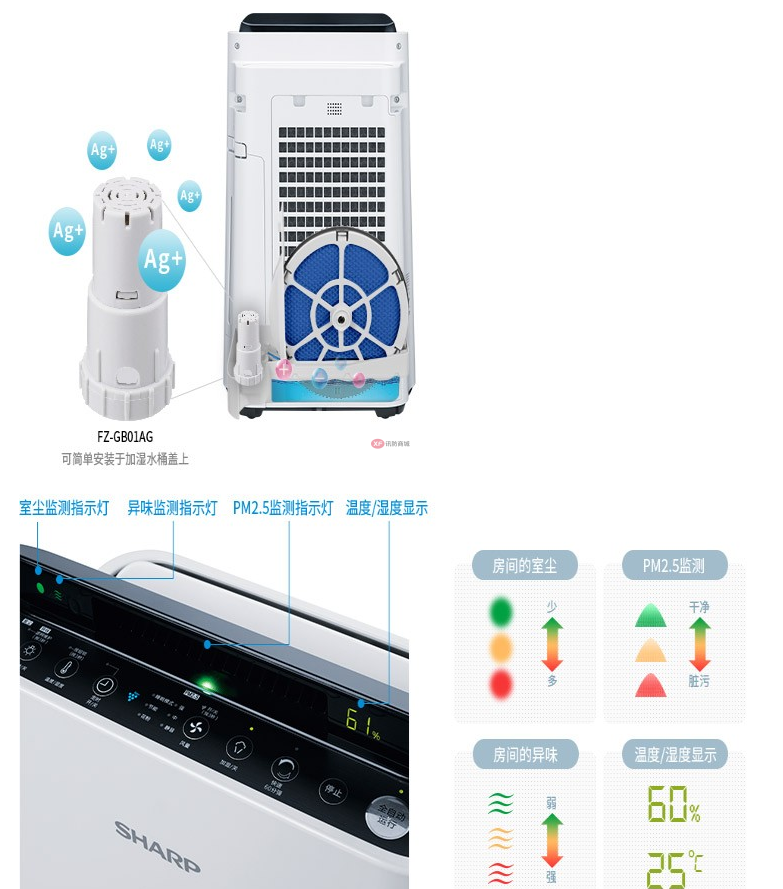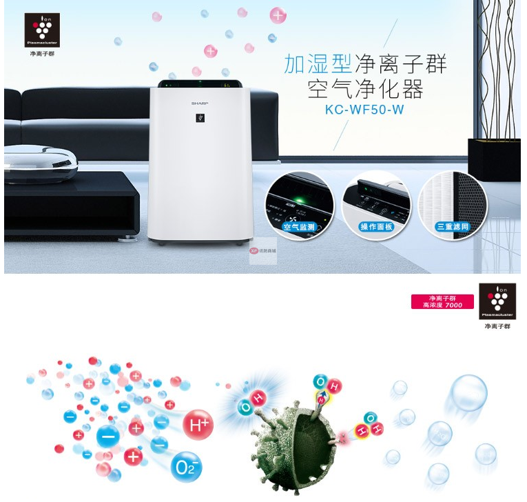 商品名稱:夏普KC-WF50-W 空氣凈化器家用除甲醛加濕除霾(含濾網(wǎng))