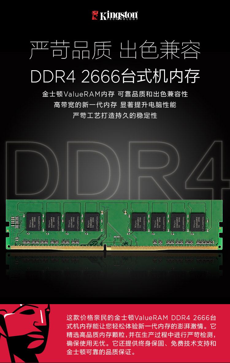 自營(yíng)金士頓 (Kingston) 8GB DDR4 2666 臺(tái)式機(jī)內(nèi)存條