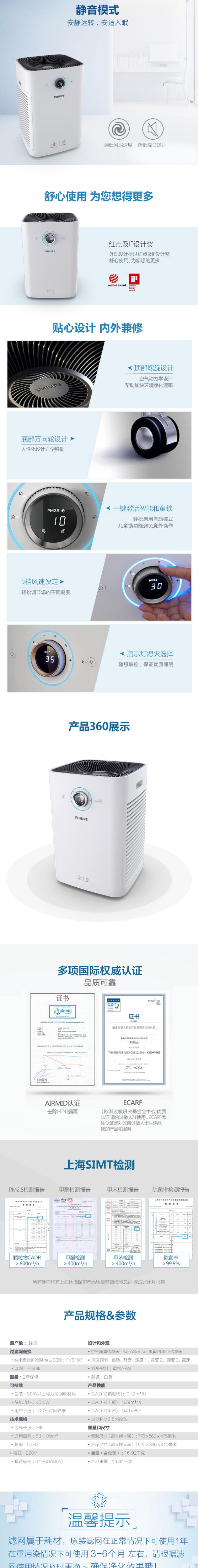 商品名稱:飛利浦 (PHILIPS) AC8612 空氣凈化器 過濾病毒 除甲醛 除霧霾 除過敏原 除細菌