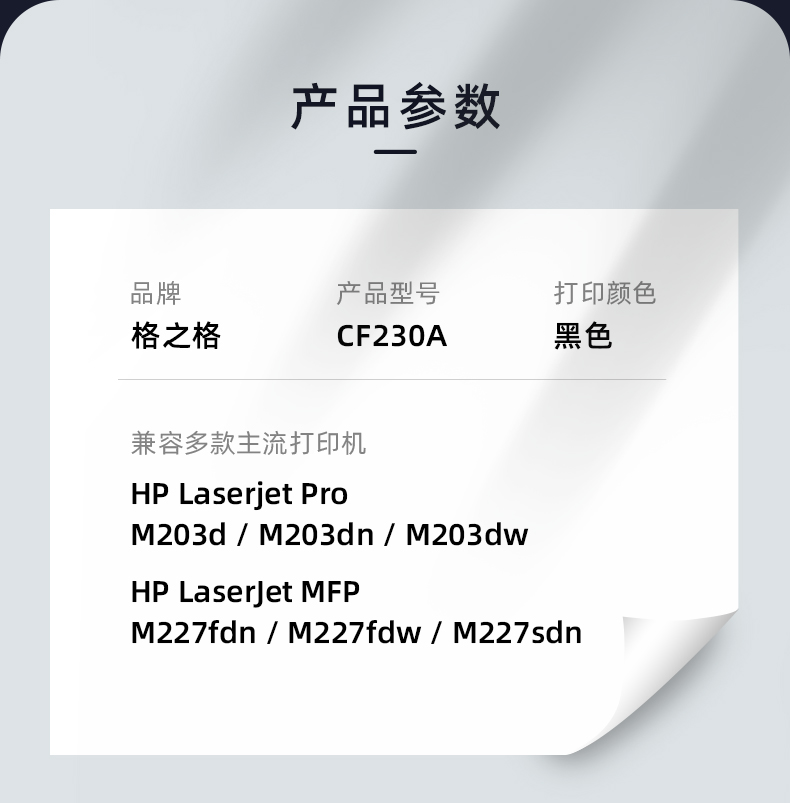 商品名稱:格之格CF230A粉盒大容量雙支裝不含芯片適用惠普M203dn M203dw M227fdn M227fdw打印機(jī)硒鼓