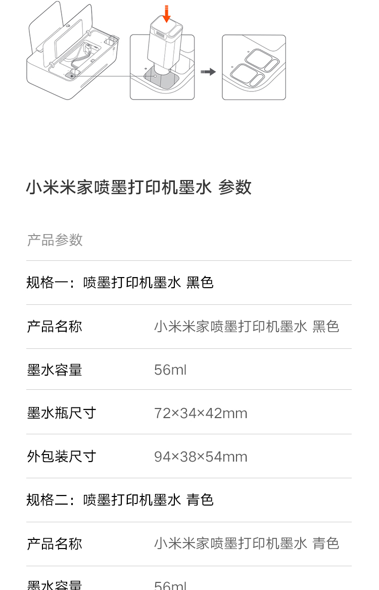 商品名稱:小米米家噴墨打印機(jī)墨水 黑色