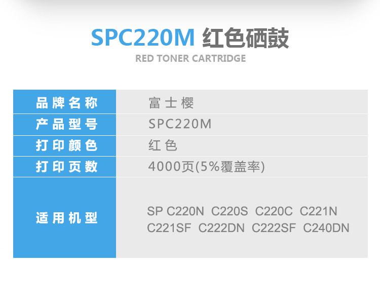 商品名稱:富士櫻(FUSICA)SPC220C紅色硒鼓 適用理光SP C220N C220S C220C C221N C221SF C222DN C222SF C240DN