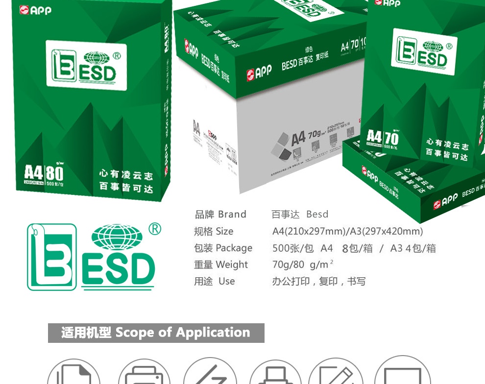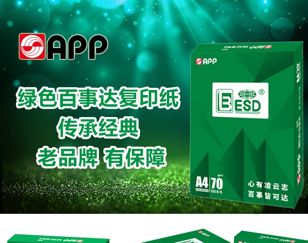 商品名稱:金光(APP)綠色百事達(dá)(Besd)A3/70g 復(fù)印紙 500張/包 10包