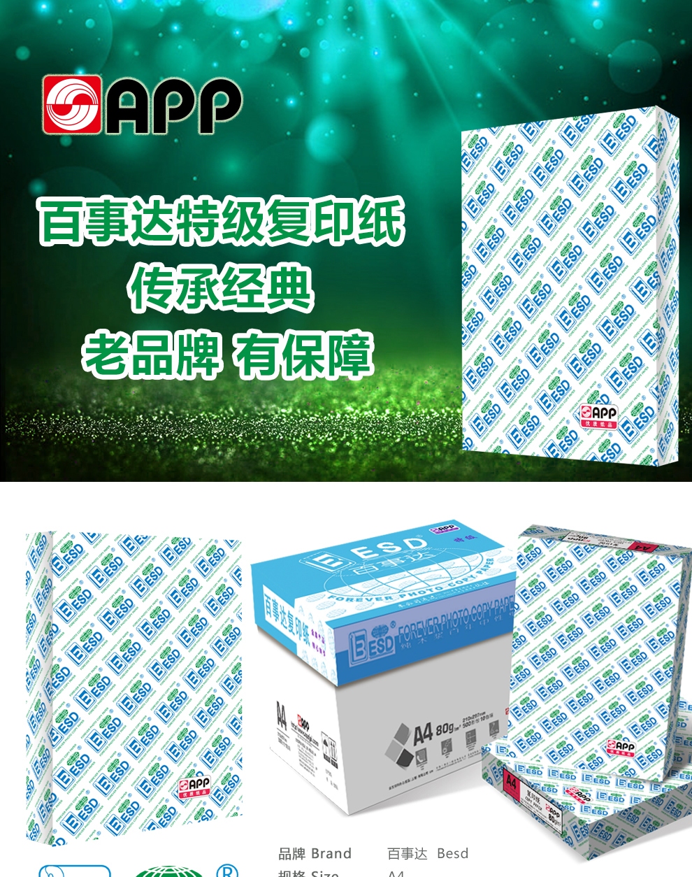 自營(yíng)金光(APP)藍(lán)色百事達(dá)(Besd)A4/80g 復(fù)印紙 500張/包 10包/箱(5000張)Z