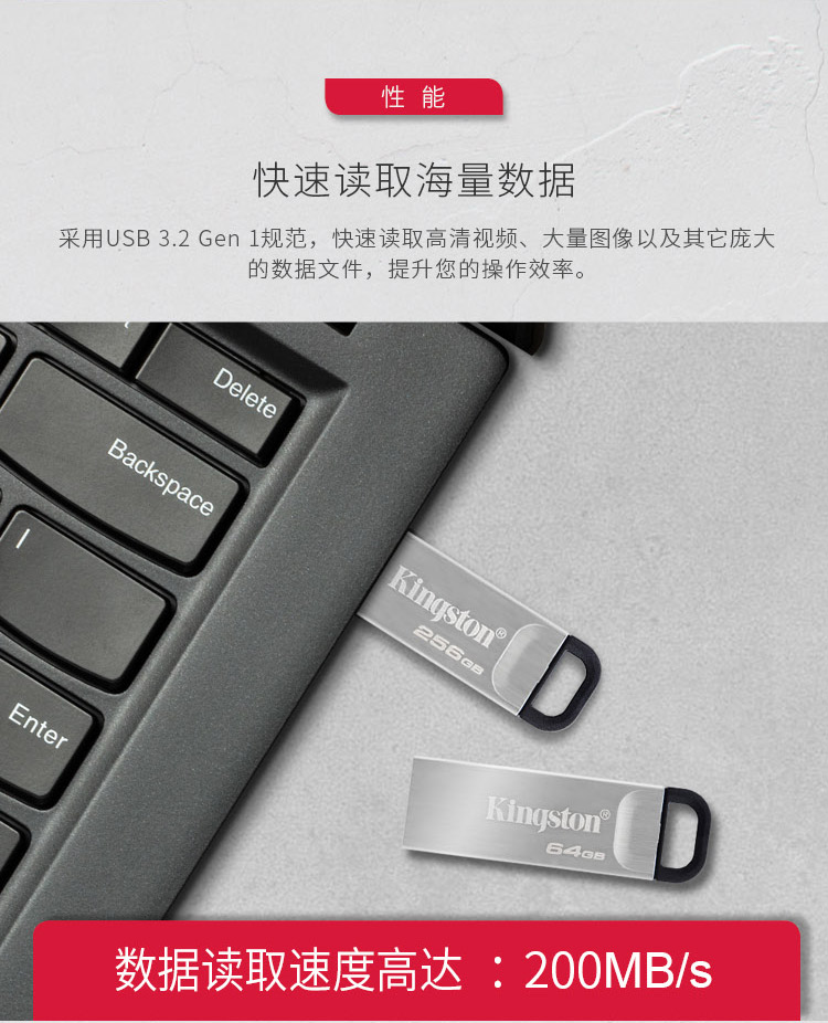 商品名稱:金士頓(Kingston)64GB USB 3.2 Gen 1 U盤 DTKN 金屬外殼 讀速200MB/s