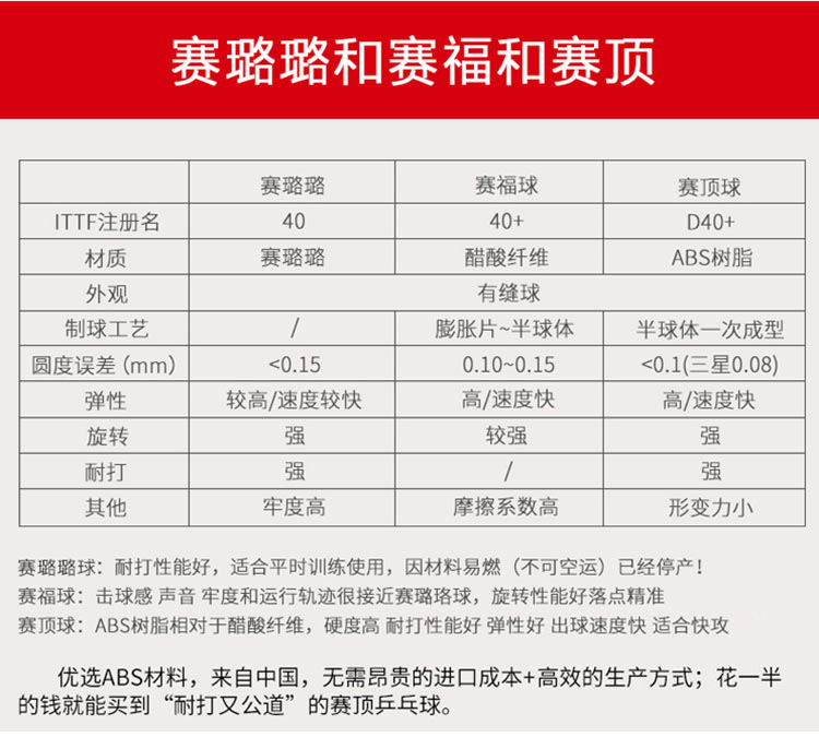 自營紅雙喜乒乓球三星賽頂3星比賽球 白色 10/個(gè)/盒