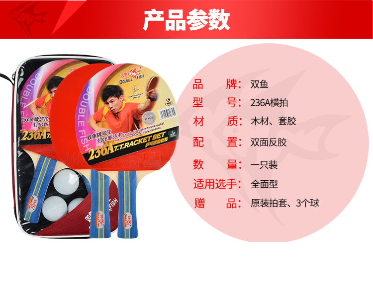 商品名稱(chēng):雙魚(yú)236A乒乓球拍娛樂(lè)型拍236A對(duì)拍(附拍套)