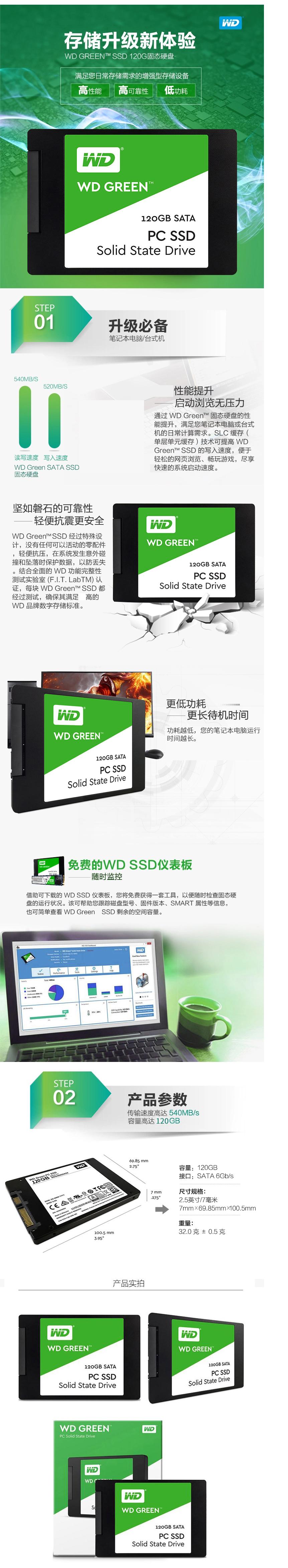 自營西部數(shù)據(jù)(WD)120GB 固態(tài)硬盤 STAT3.0接口 讀速545MB/s 綠盤