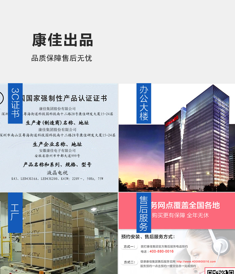 商品名稱:KKTV K43 康佳 43英寸全高清 64位液晶平板智能電視