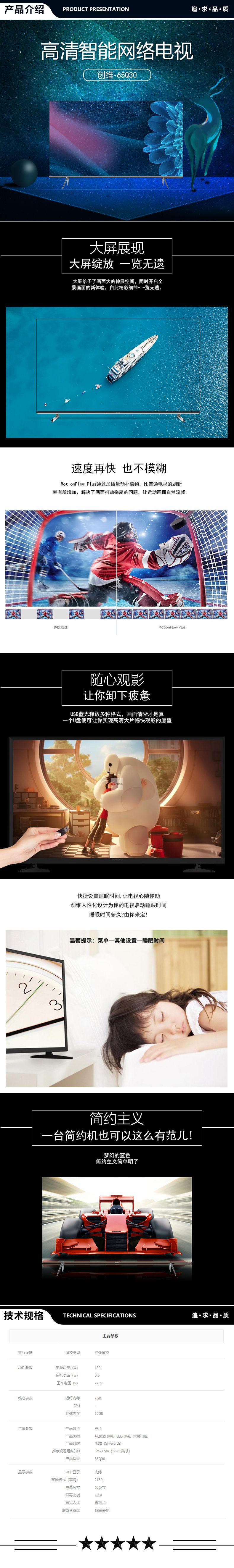 商品名稱:創(chuàng)維(SKYWORTH)65Q30 65英寸智能聲控電視 4K超高清