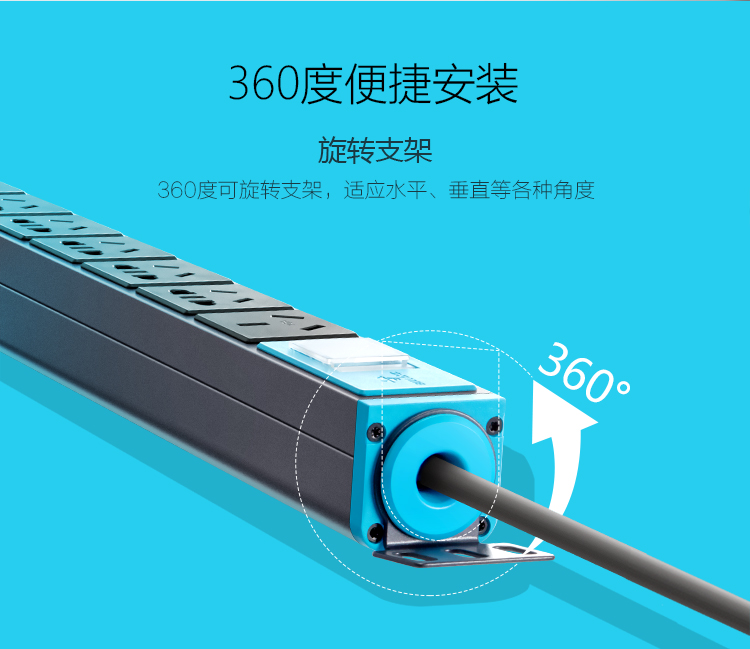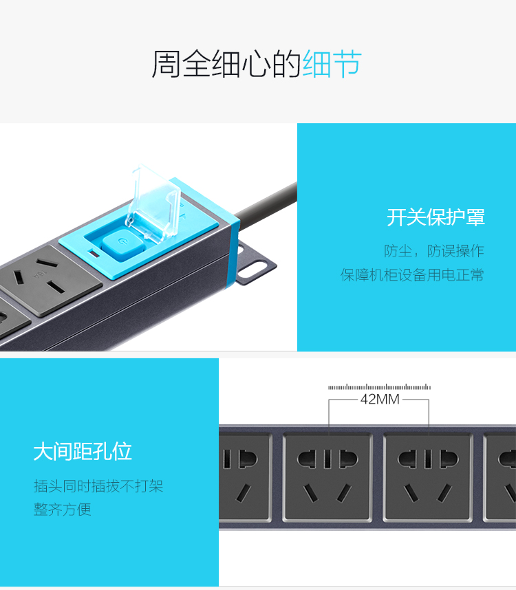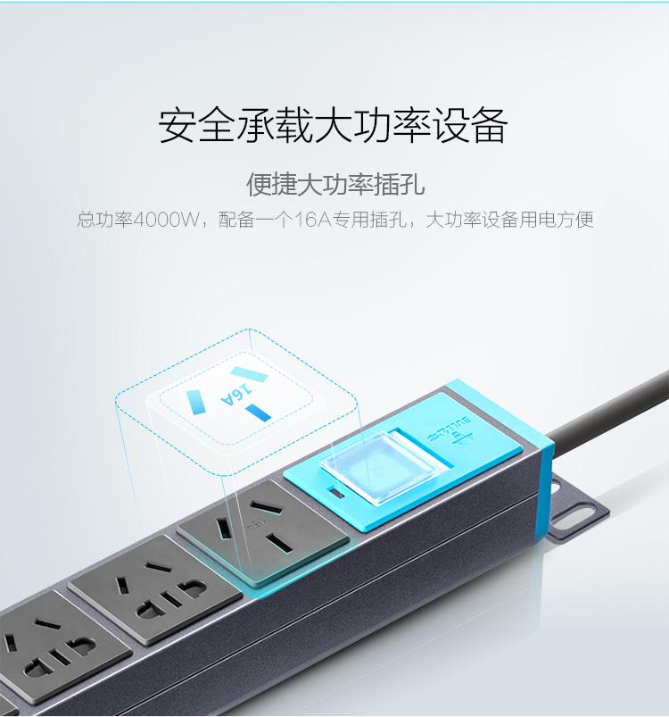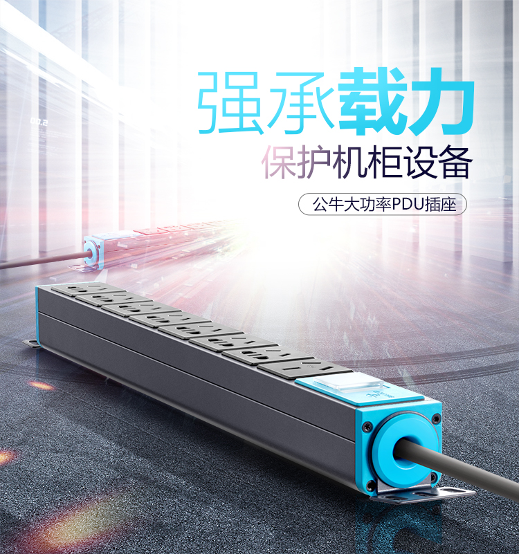 自營公牛(BULL)16A大功率插PDU機柜座/插線板/插排/排插/接線板/拖線板 8位總控全長3米 GNE-108D