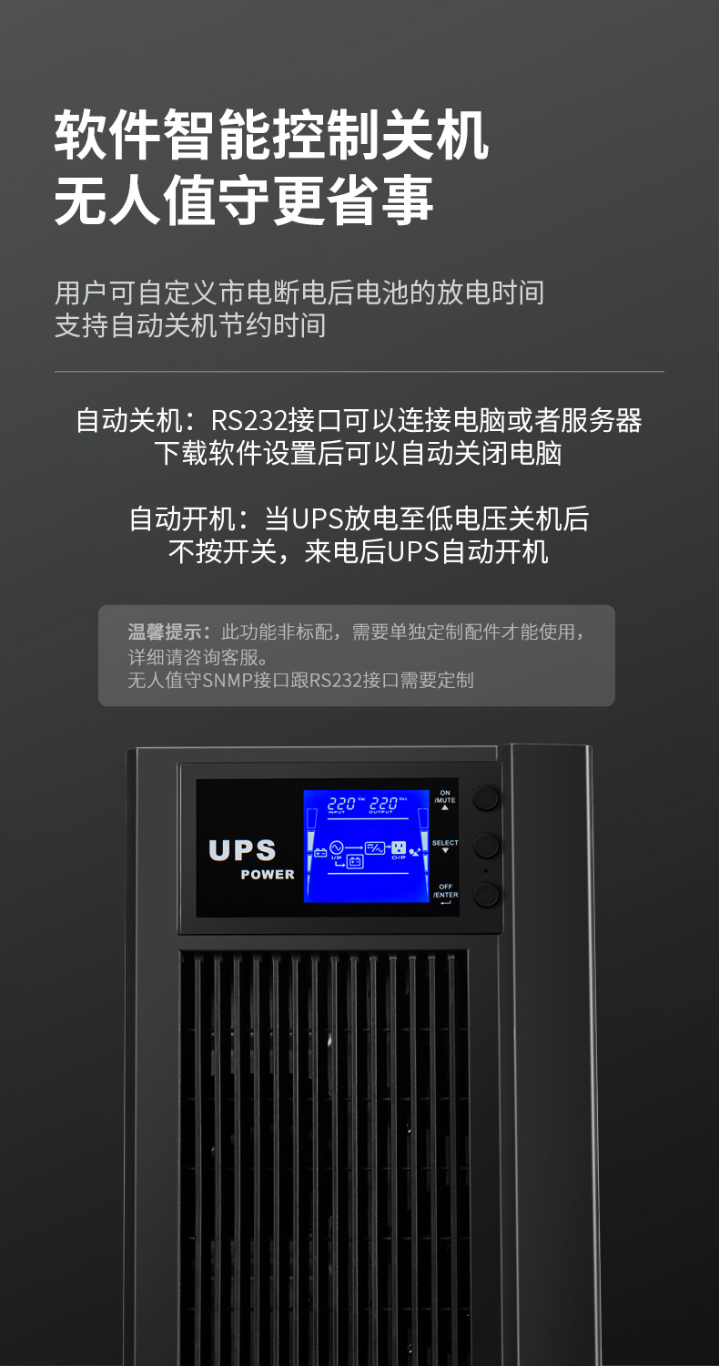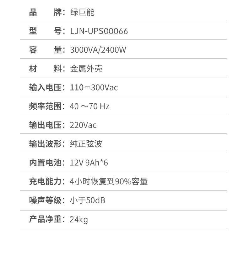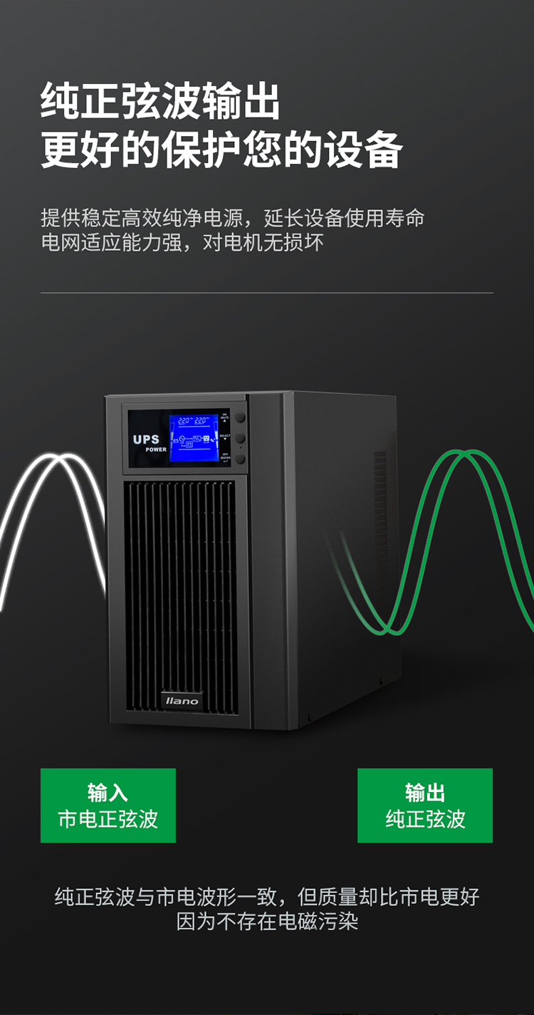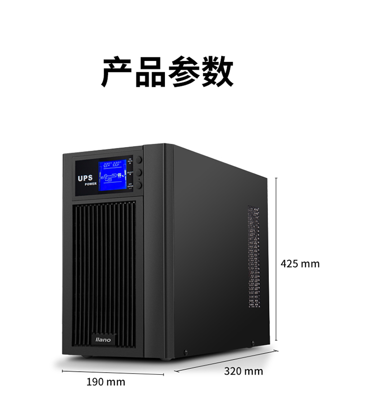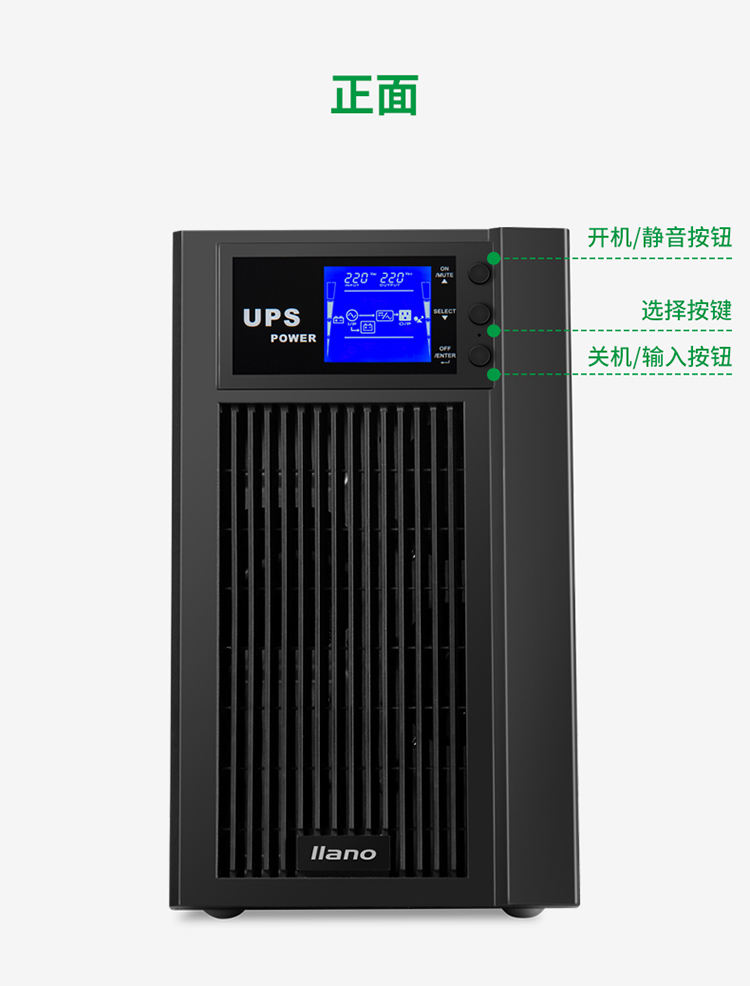 商品名稱:綠巨能(llano)UPS電源家用 不間斷電源 服務(wù)器辦公電腦后備電源 金屬外殼 在線式 3KVA/2400W 9AH電池*6
