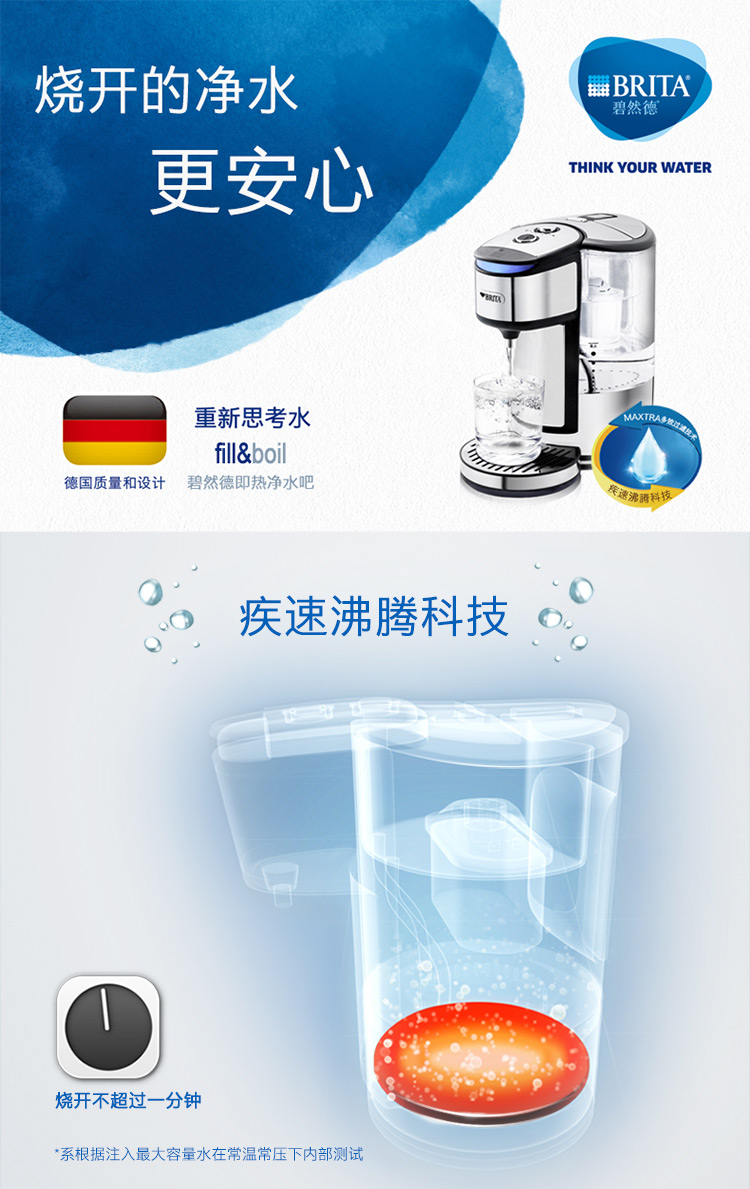 自營(yíng)碧然德(BRITA)過濾凈水器 家用濾水壺 凈水壺 FB2020B1即熱凈水吧 電熱過濾凈水壺 1.8L