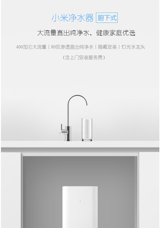 • 商品名稱:小米(MI)凈水器廚下版 家用凈水器 RO反滲透大流量直飲低廢水 智能提醒自助更換濾芯更便捷