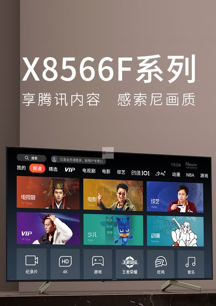 自營索尼(SONY) KD-55X8566F 55英寸 超高清4K液晶LED電視 支持有線/無線網(wǎng)絡 二級能效 3840x2160分辨率 一年保修