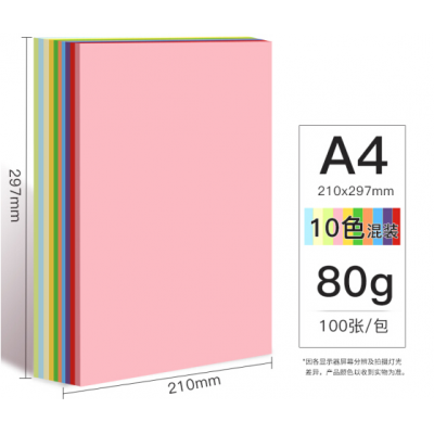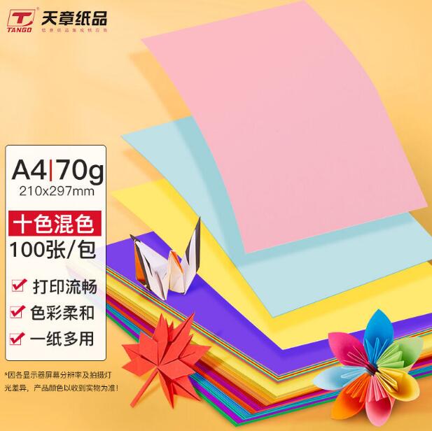 自營天章(TANGO)新綠天章A4彩紙十色混色 彩色打印紙復(fù)印紙 彩色卡紙非硬 彩色紙兒童手工折紙剪紙 混色80g100張