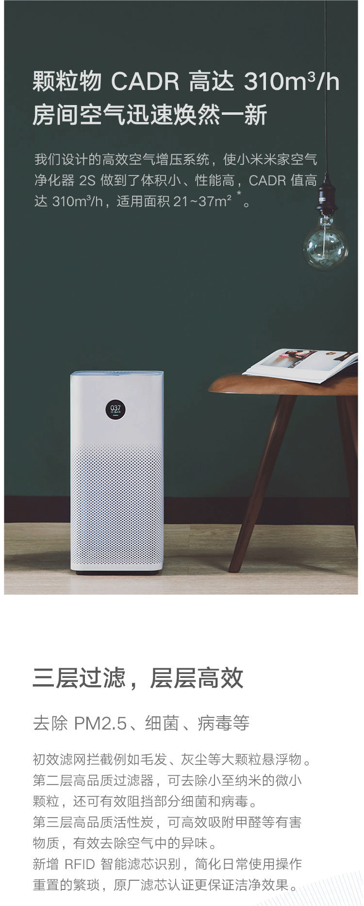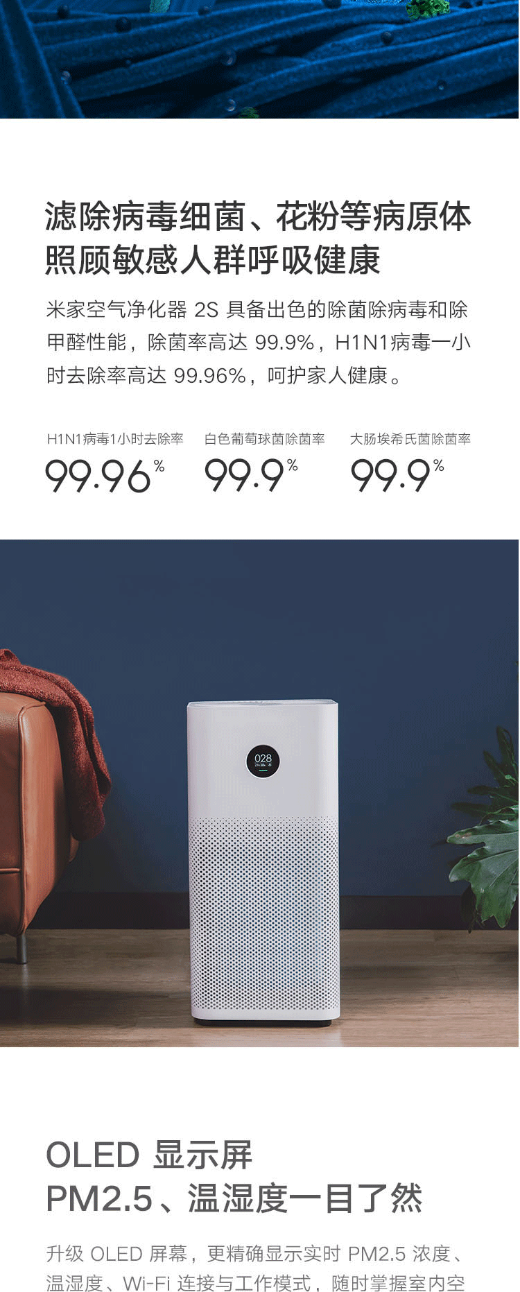 商品名稱:米家 小米空氣凈化器2S 家用除甲醛除煙味PM2.5 靜音設(shè)計(jì) 智能互聯(lián) AC-M4-AA 29W