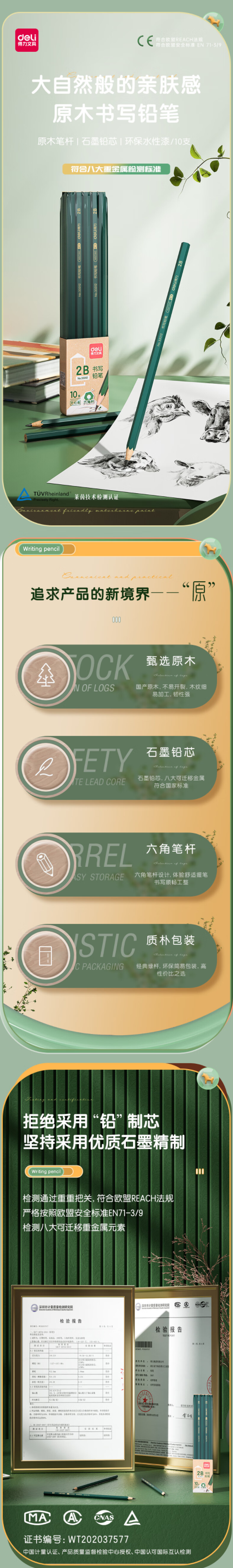 商品名稱:得力(deli)經(jīng)典綠桿學(xué)生2B鉛筆六角筆桿考試素描繪圖鉛筆 開(kāi)學(xué)禮物10支33312