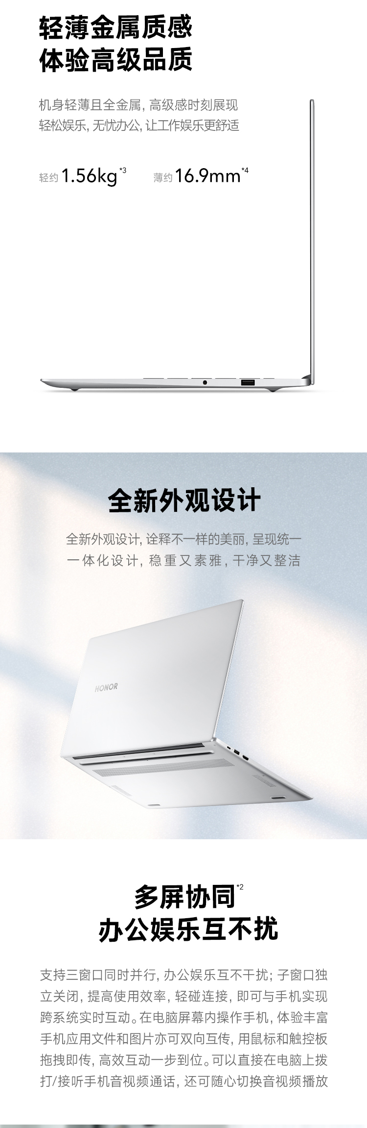 商品名稱:榮耀筆記本 MagicBook X 15 2021 15.6英寸全面屏輕薄筆記本電腦 (i5 10210U 8GB 512GB多屏協(xié)同)冰河銀