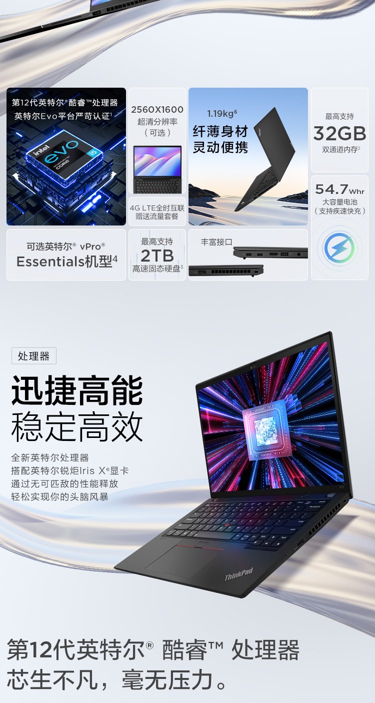 自營ThinkPad 聯(lián)想 X13 2022高端輕薄本 13.3英寸游戲商務(wù)辦公超薄筆記本電腦 指紋識別 12代i5 16G 512G 02CD