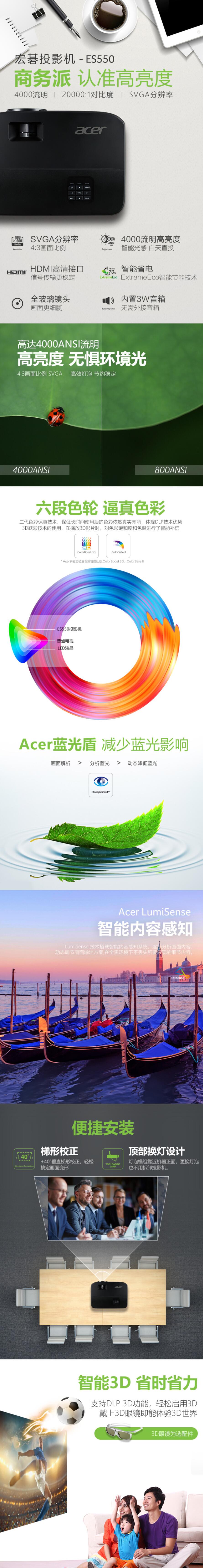 商品名稱:宏碁(Acer)ES550 投影儀投影機(jī) 商務(wù)辦公(普清 4000流明 0.55