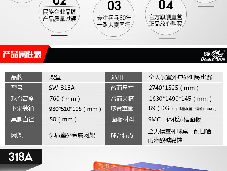 商品名稱:雙魚室外318A標(biāo)準(zhǔn)乒乓球臺防水戶外露天乒乓球