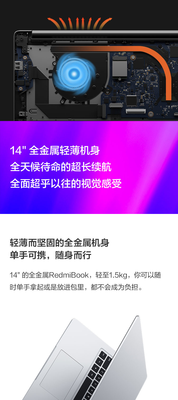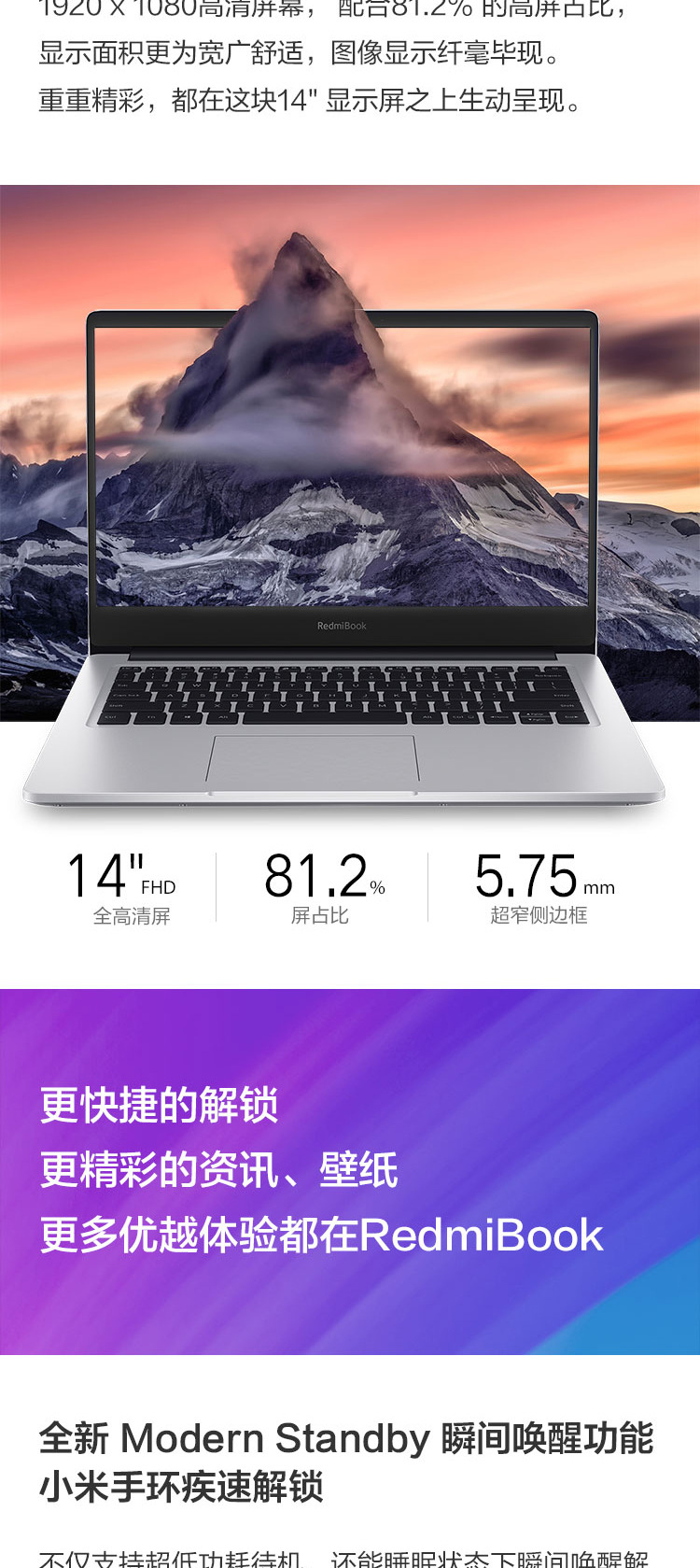 自營RedmiBook 14英寸全金屬超輕薄(第八代英特爾酷睿i5-8265U 8G 512G SSD MX250 2G獨顯 Office 支持手環(huán)疾速解鎖 Win10)游戲 銀 筆記本 小米 紅米